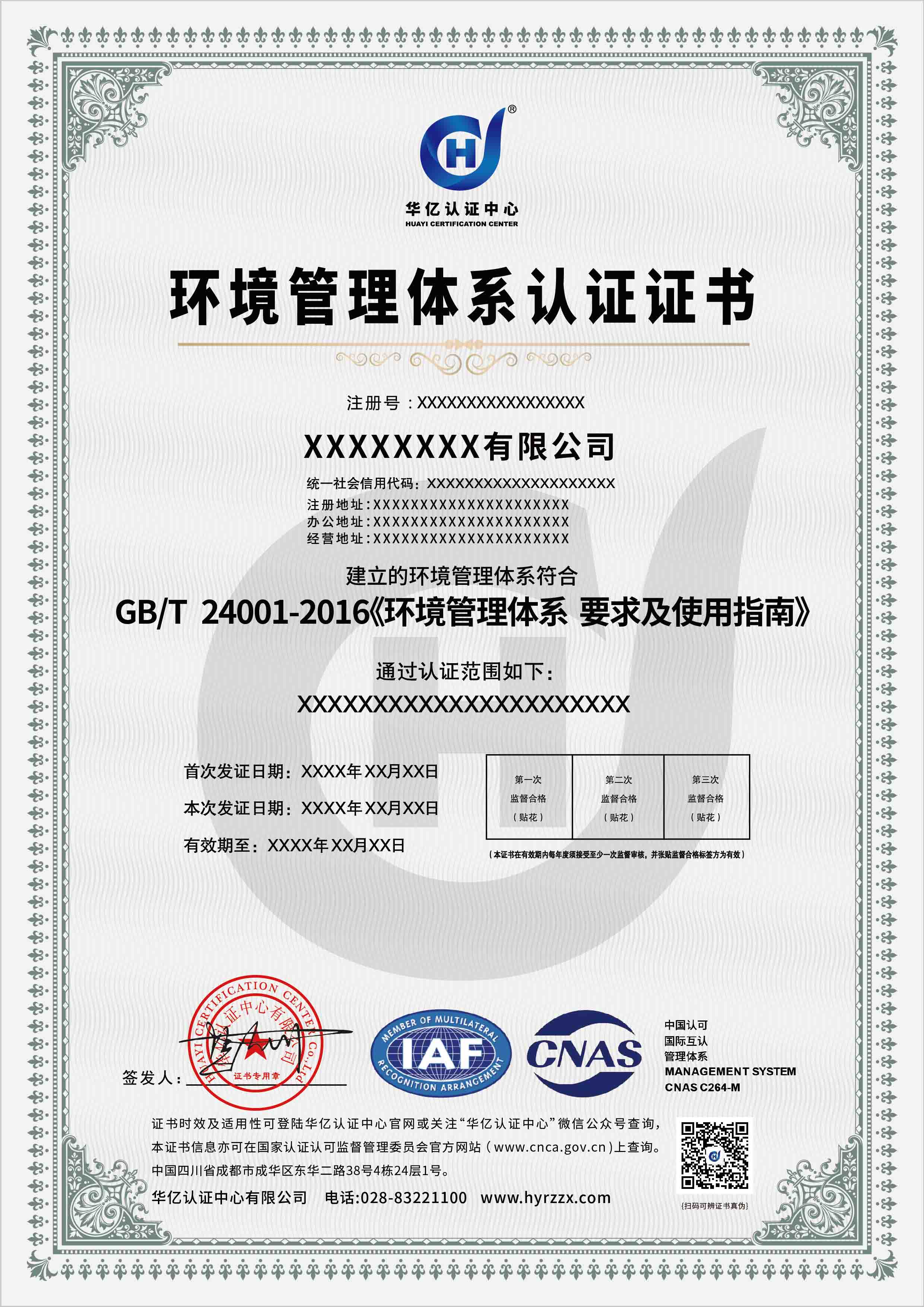 环境管理体系证书